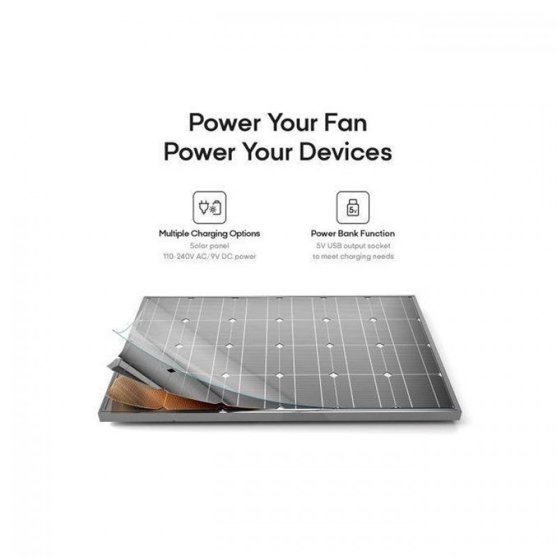Rechargeable & Solar Powered: The fan can be powered by a solar panel, or you can charge it via electricity for ultimate versatility. Perfect for use in homes, offices, or outdoor activities.