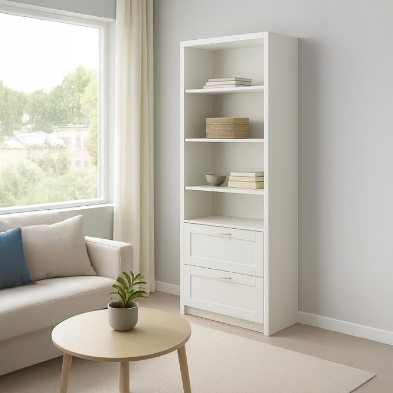 Tall 2-Drawer Bookcase – Modern Storage and Display Solution