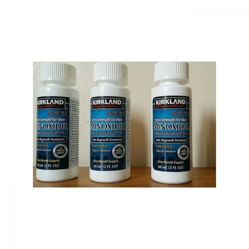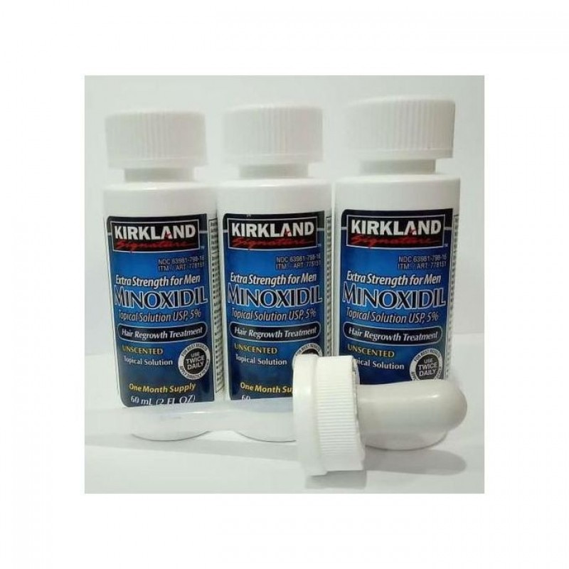 Promote hair growth with the rich formula of the Kirkland Signature Minoxidil 5% treatment made for men. The active ingredient of this Kirkland extra strength treatment is 5% Minoxidil that nourishes the hair follicle to facilitate the hair growth process. As believed by the makers, this Kirkland hair loss treatment takes about 2 - 4 months time for effective results to start showing. Just 1 ml of the Kirkland Signature Minoxidil 5% treatment has to be applied twice daily to give you the best results possible. Treat thinning hair and balding with this Kirkland hair loss treatment.