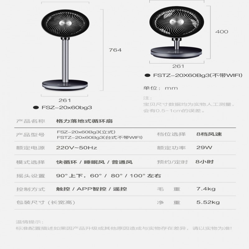 格力空气循环扇家用涡轮对流变频直流静音落地立式wifi遥控电风扇