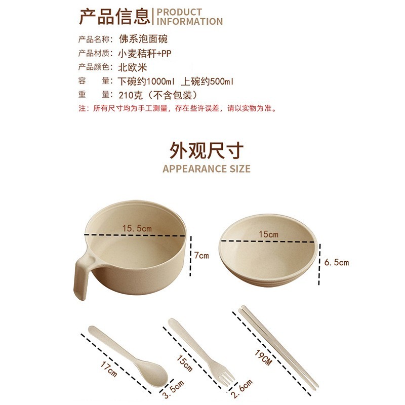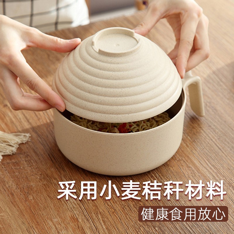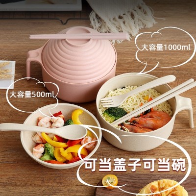 大号泡面碗带盖日式学生食堂碗家用汤面碗叉勺筷饭碗塑料方便面碗单人碗筷套装