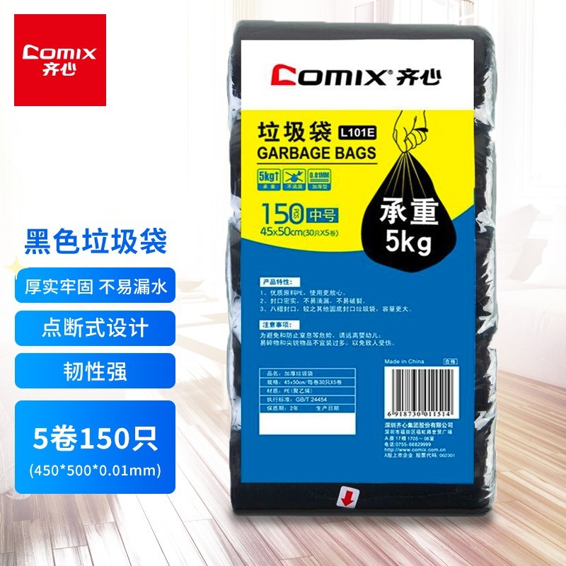 齐心(Comix)垃圾袋 加厚中号 办公用品 150只45*50cm5卷 办公工具