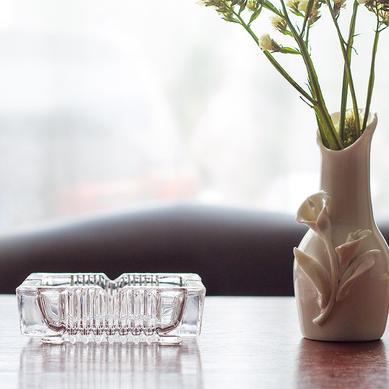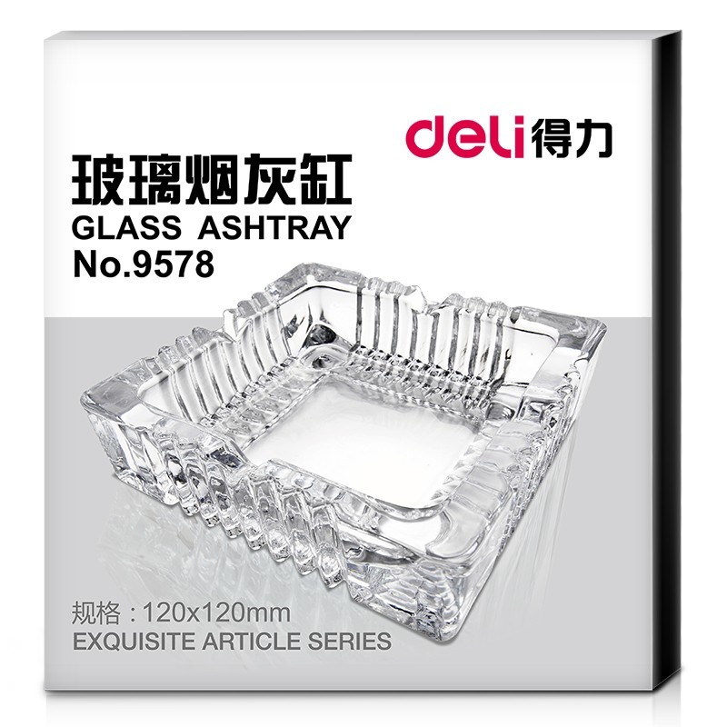 得力(deli)120*120mm中号欧式方形玻璃烟灰缸茶几餐桌摆件 办公用品