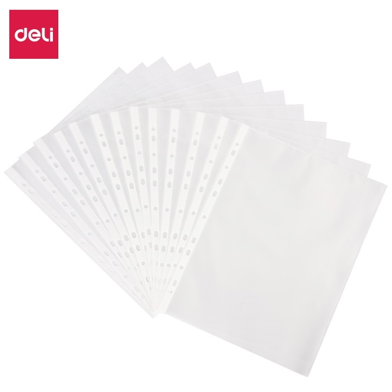 得力(deli)100个装11孔透明文件袋 A4插页保护袋 文件快递袋 活页文件资料袋 办公用品