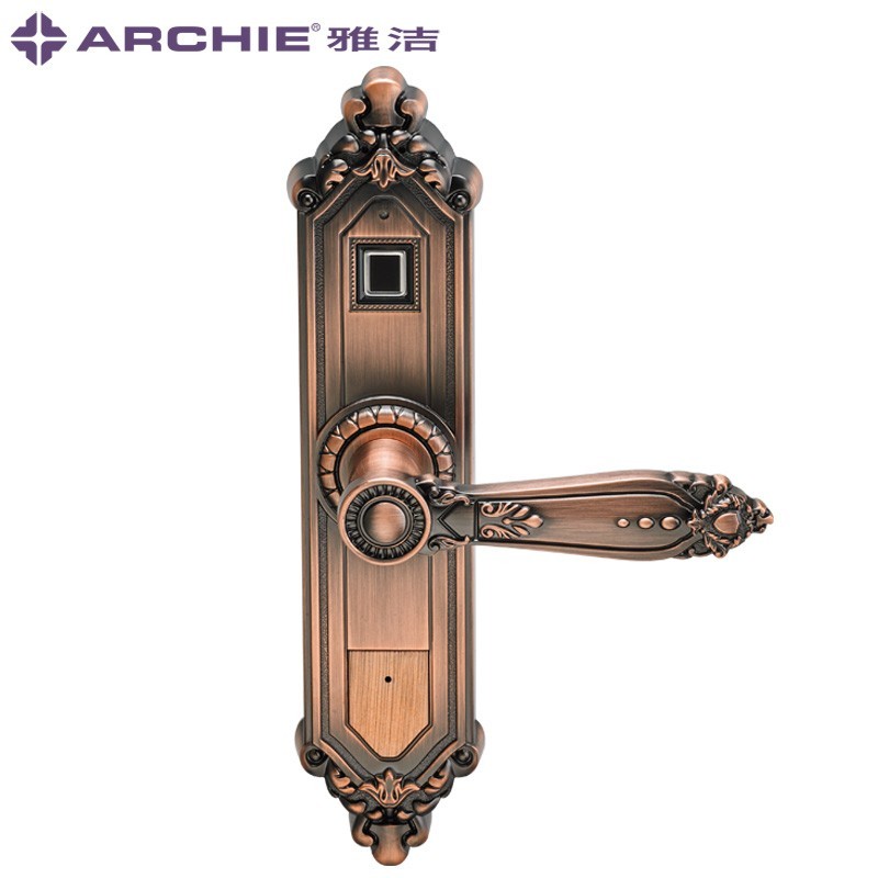 雅洁智能门锁指纹锁电子锁室内门房间门锁实木门家用AJ4011-03 AJ4011-03-KW(雅古红)左内