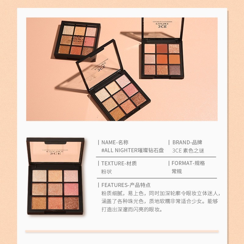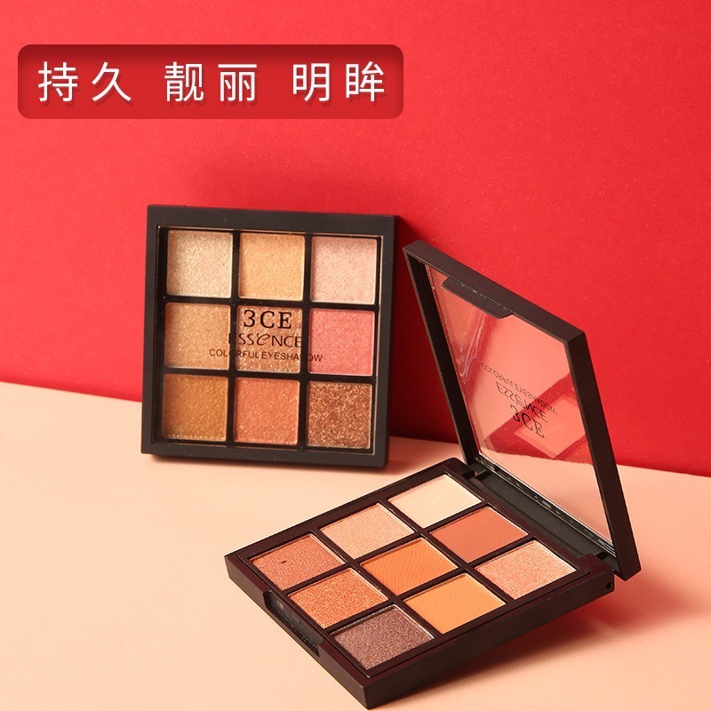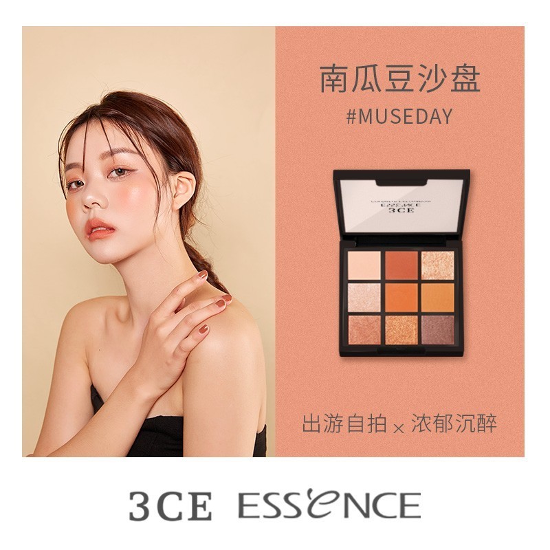 3CE ESSENCE 九宫格眼影盘闪粉防水防汗不晕染男女学生粉棕教师节生日礼物送女生女朋友南瓜豆沙盘