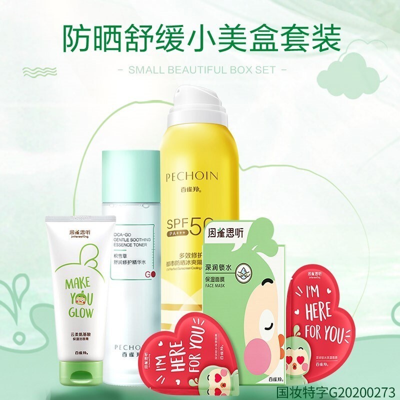 百雀羚防晒舒缓小美盒(因雀思听洗面奶50g+积雪草减负水30ml+小蜜蜂防晒喷雾60ml+因雀思听面膜5片)