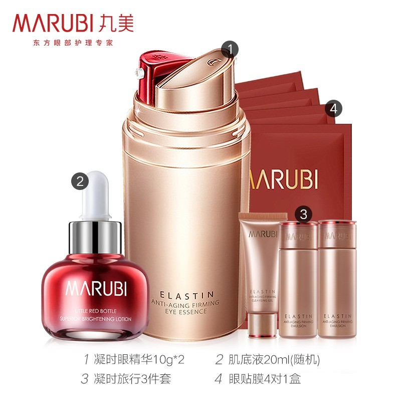 丸美眼霜 小弹瓶 弹力蛋白凝时紧致眼部护理套装(眼霜10g*2+精华液20ml+眼膜贴4对+旅行套)淡化细纹鱼尾纹