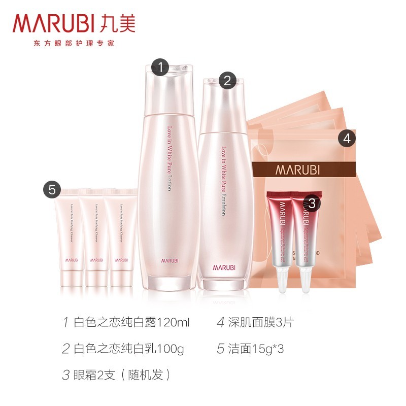 丸美套装 美白祛斑护肤化妆品 白色之恋水乳(爽肤水120ml+乳液100g)赠(洁面45g+面膜*3+眼霜小样*2)改善暗沉