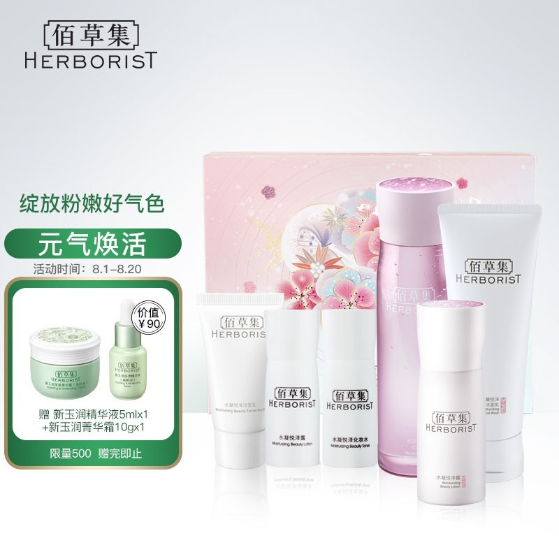 佰草集水凝悦泽焕亮补水护肤品套装(护肤礼盒水乳套装)(保湿洗面奶化妆水乳液)