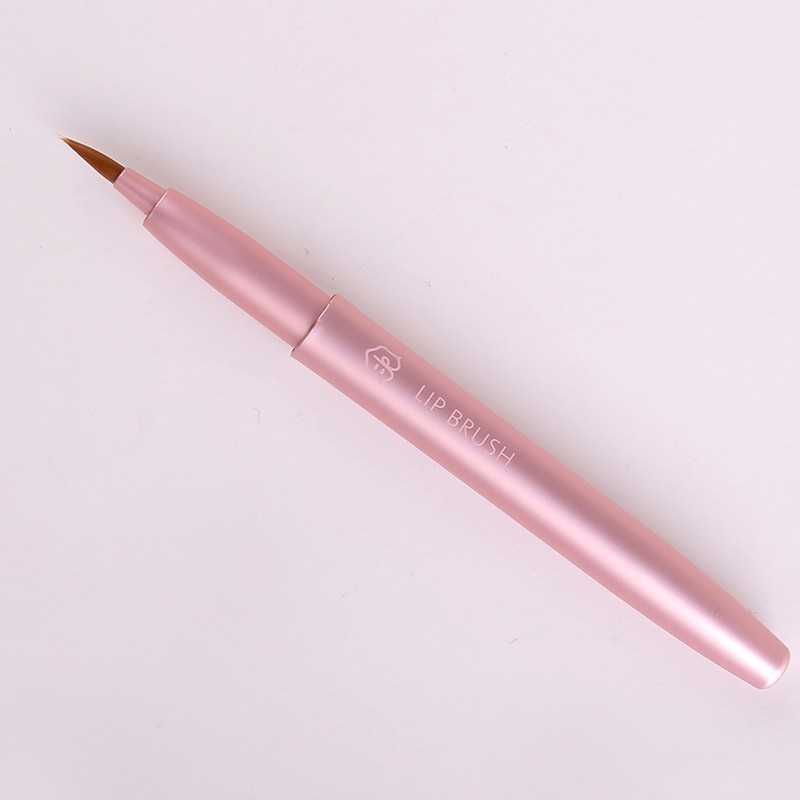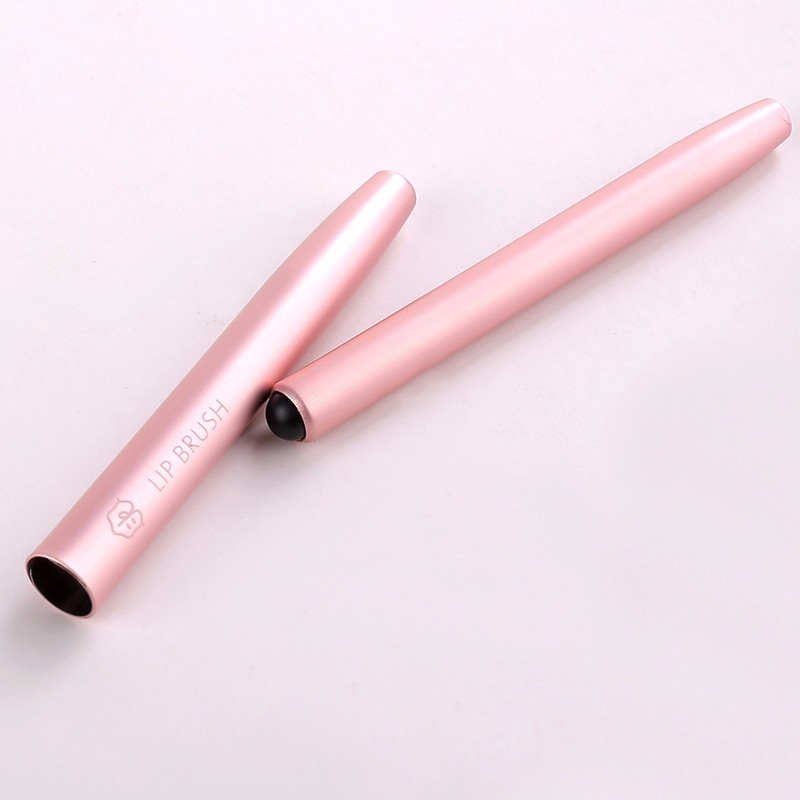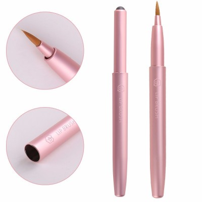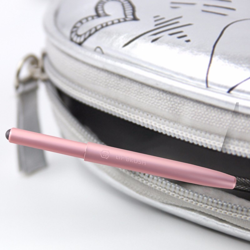 今之逸品 伸缩式唇刷女便携带盖软毛小扁头唇刷迷你口红唇线化妆刷 粉红色
