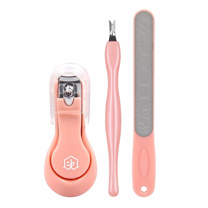 今之逸品 指甲刀修剪套装工具趾甲钳指甲剪死皮挑磨砂指甲锉抛光3件套 粉色