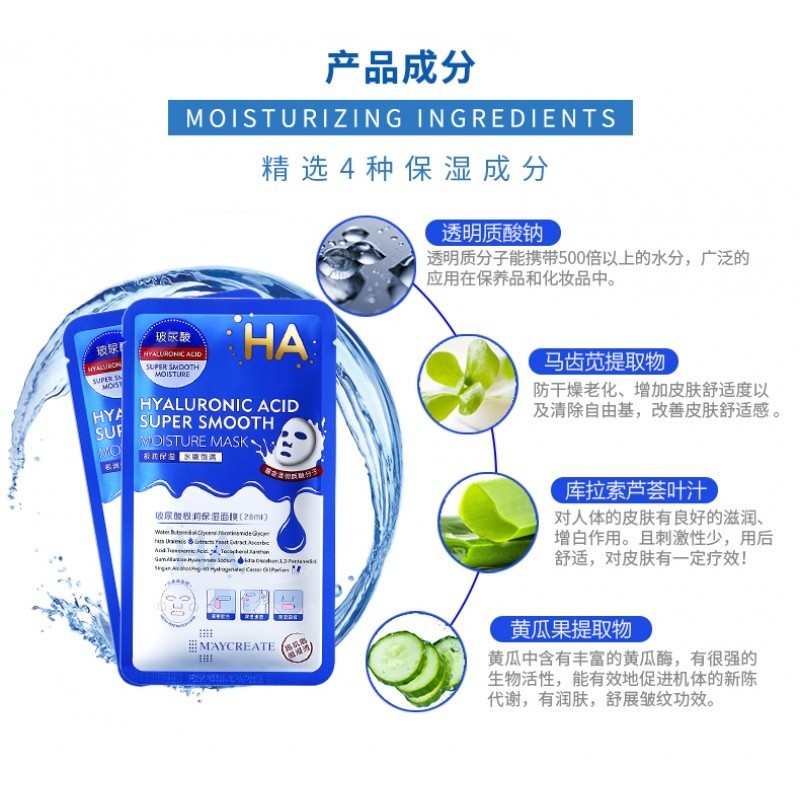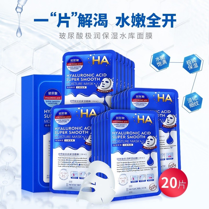健美创研 玻尿酸补水面膜贴 深层保湿滋润收缩毛孔面膜5片/10片/20片 男女学生适用