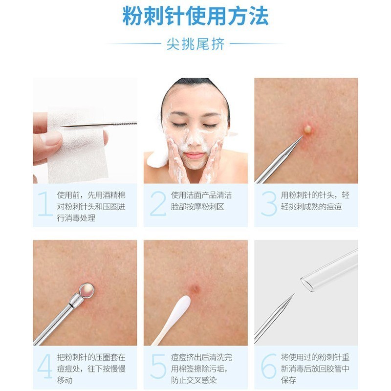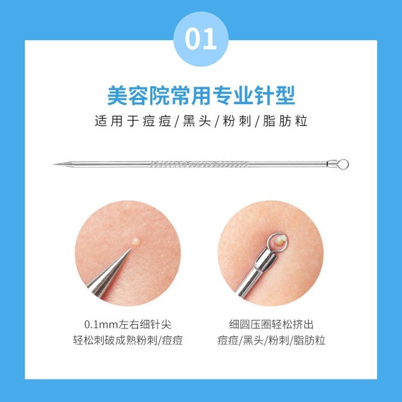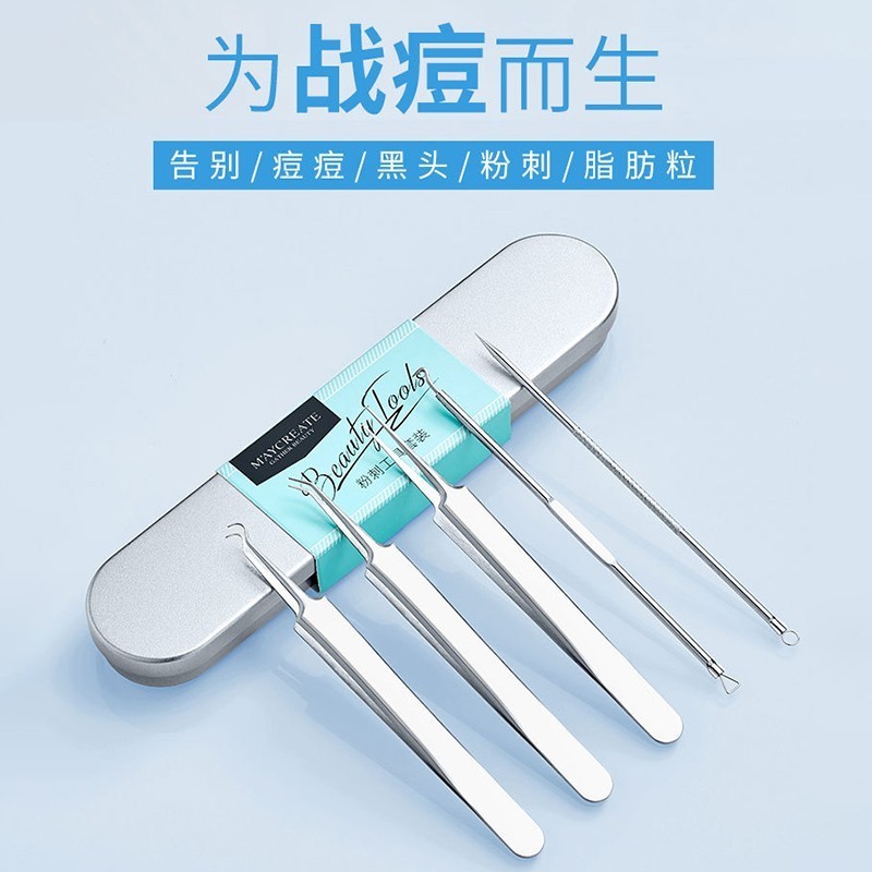 健美创研不锈钢粉刺针4件套装 黑头脂肪粒暗疮痘美容针挑痘挤痘针粉刺夹