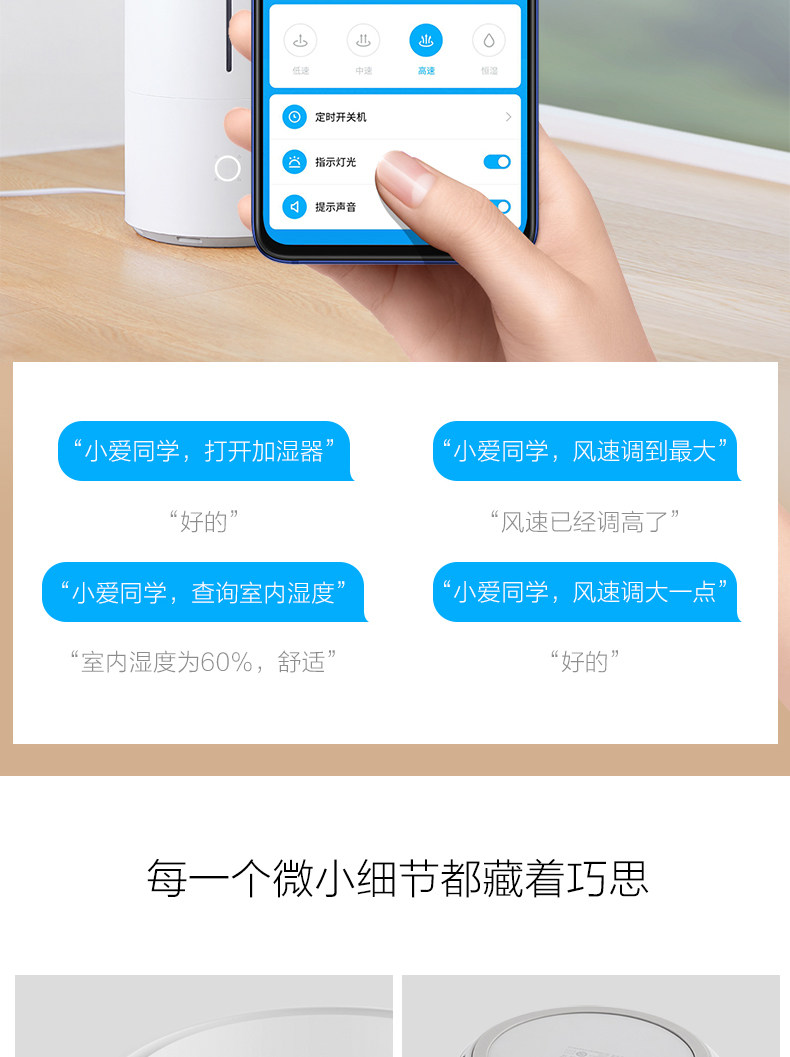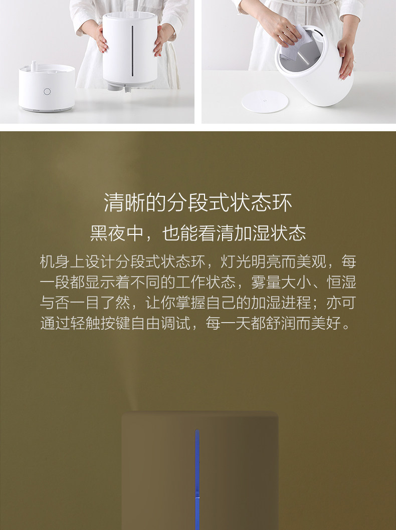 小米米家智能除菌加湿器台式家用卧室办公大雾孕妇婴儿杀菌超声波