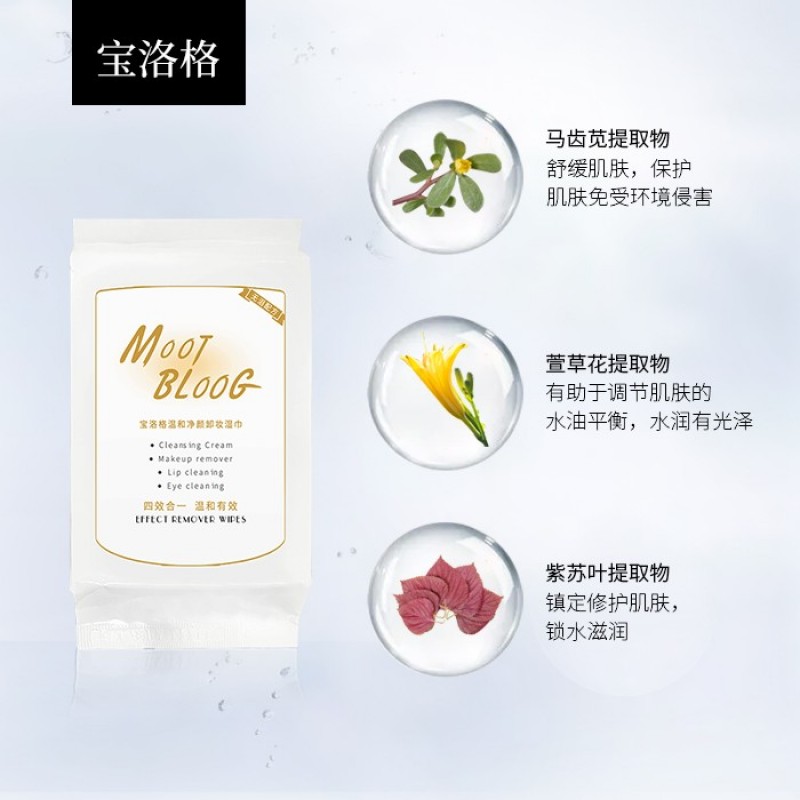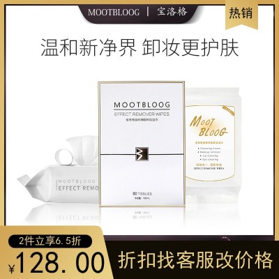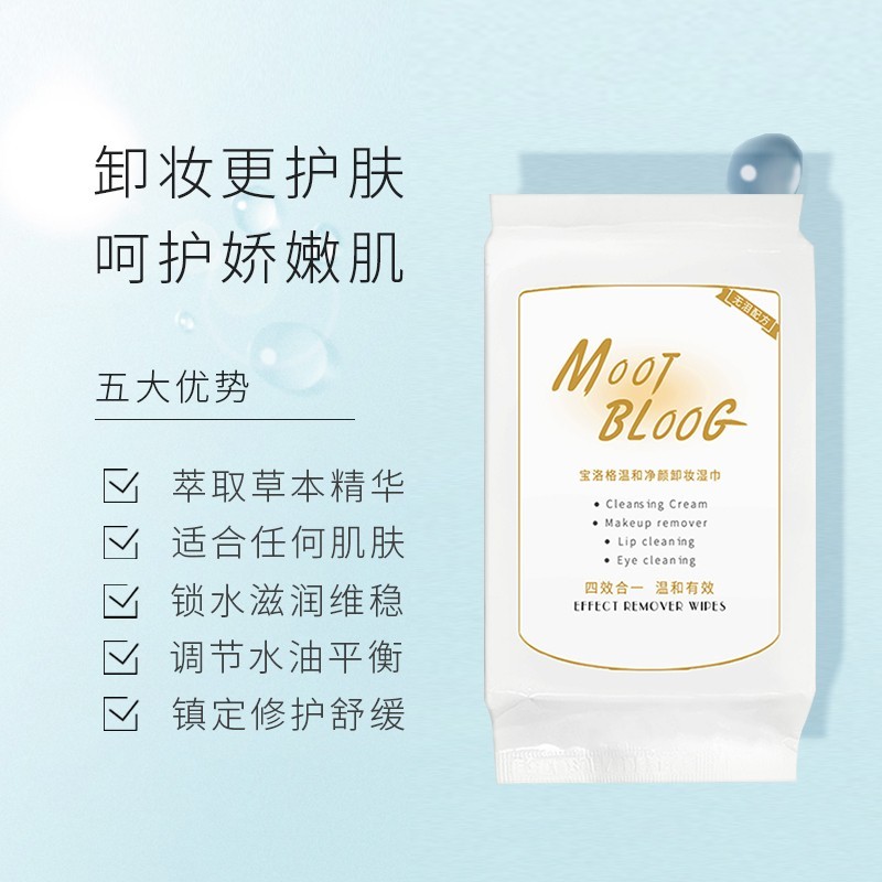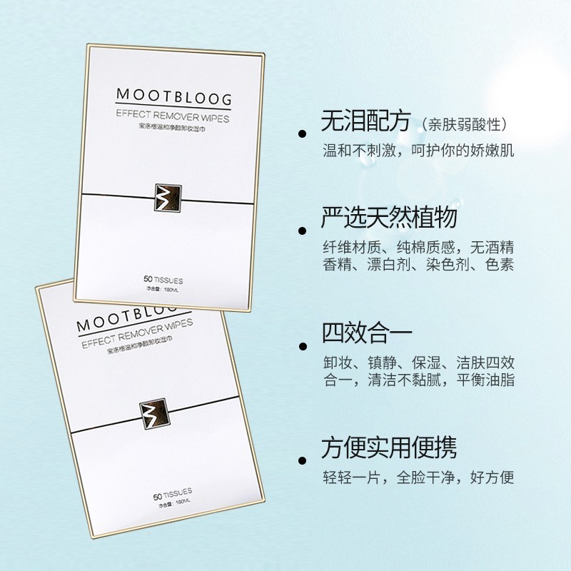MOOTBLOOG宝洛格卸妆湿巾一次性50片无泪配方温和无刺激深层清洁