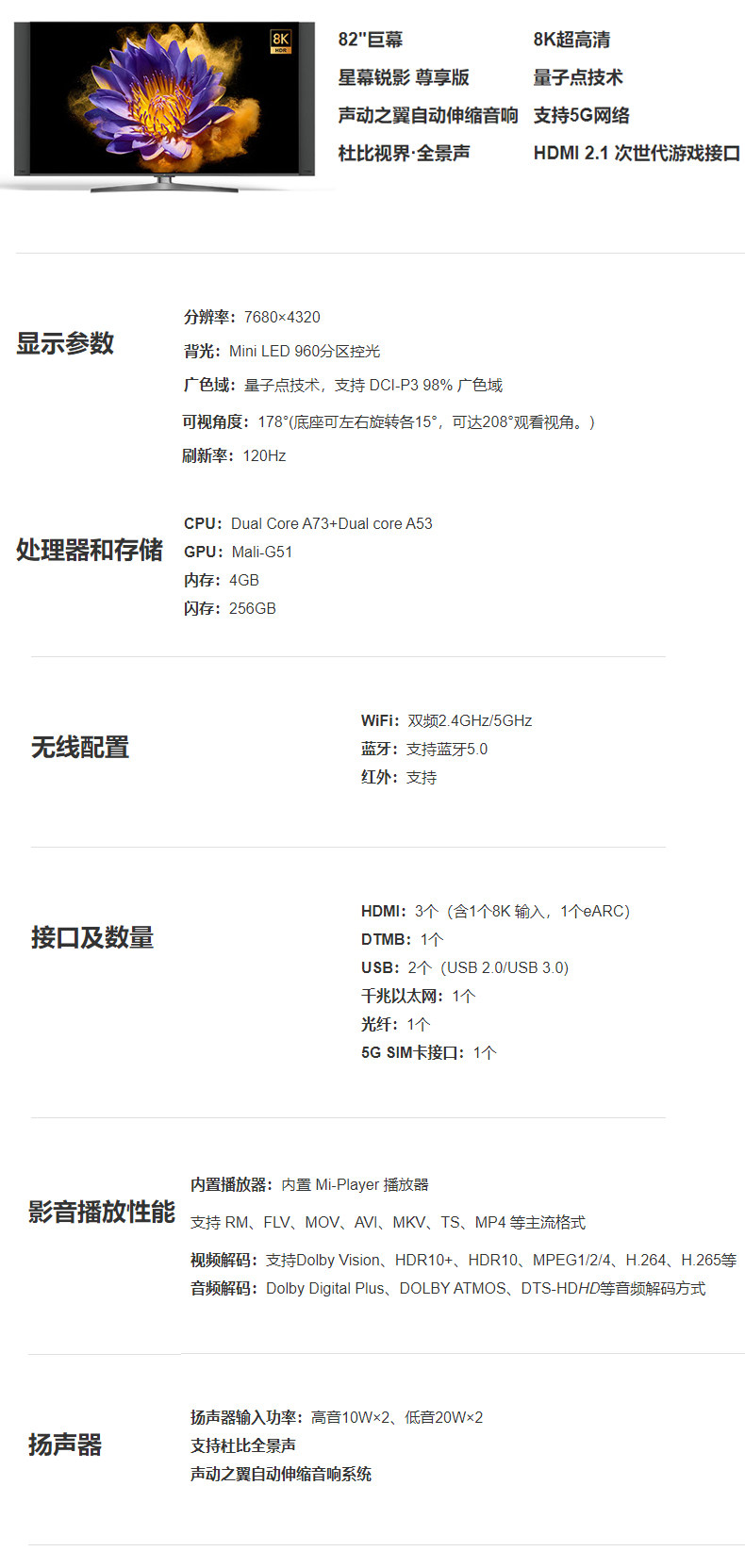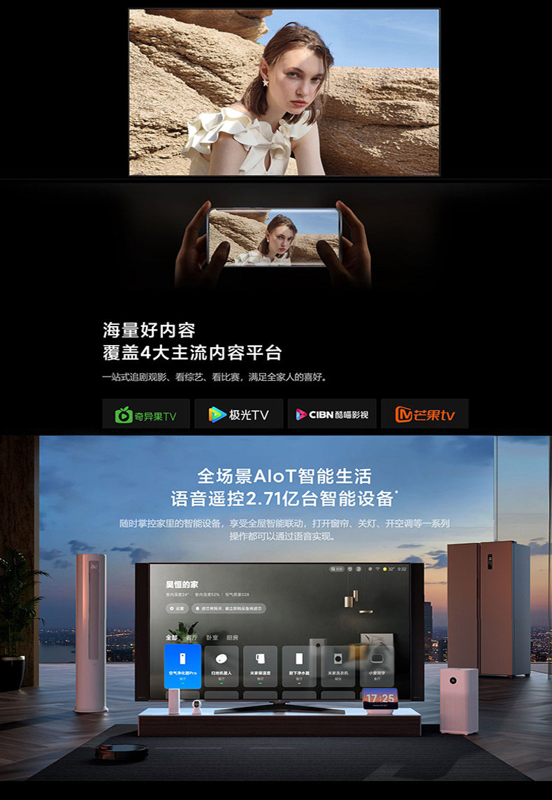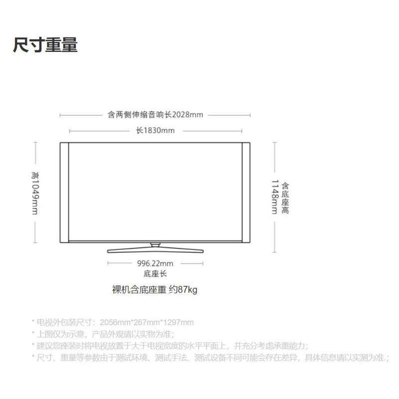 小米大师L82M68KP82英寸至尊纪念版量子点8K超高清网络电视机