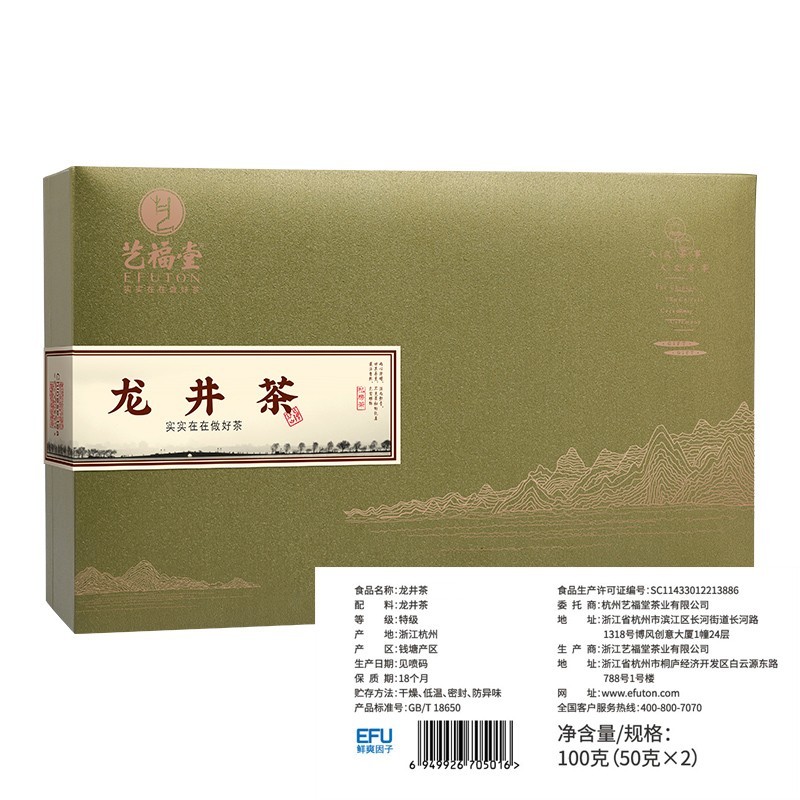 艺福堂茶叶2022新茶明前特级龙井茶绿茶礼盒装中秋送礼送长辈100g