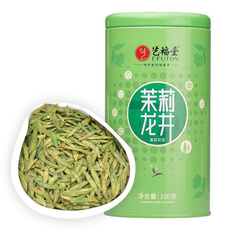 艺福堂茶叶茉莉花龙井茶明前横县茉莉花茶绿茶浓香型一级100g灌装