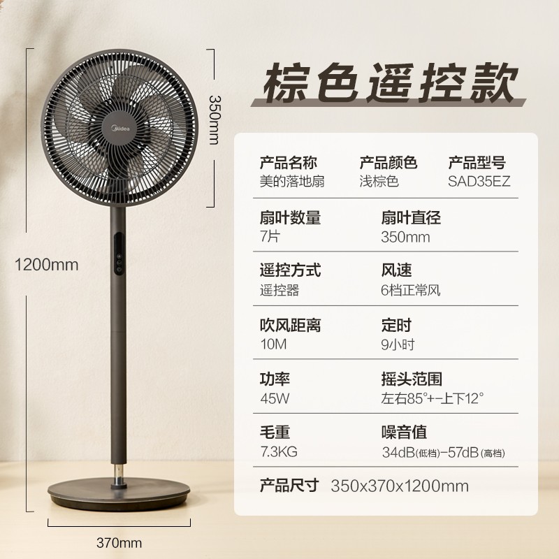 美的电风扇落地扇家用立式电扇遥控节能省电 7叶大风宿舍卧室正品