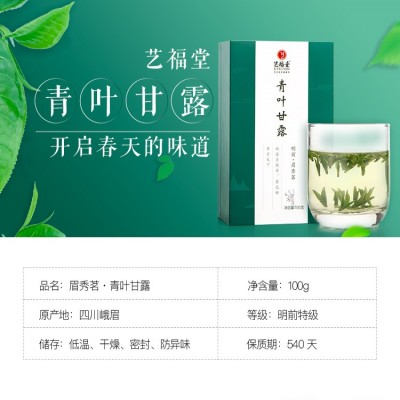艺福堂茶叶2022新茶明前特级青叶甘露竹叶形雀舌早春嫩芽绿茶100g