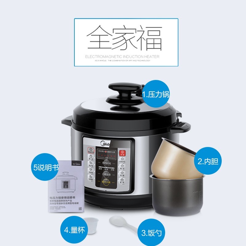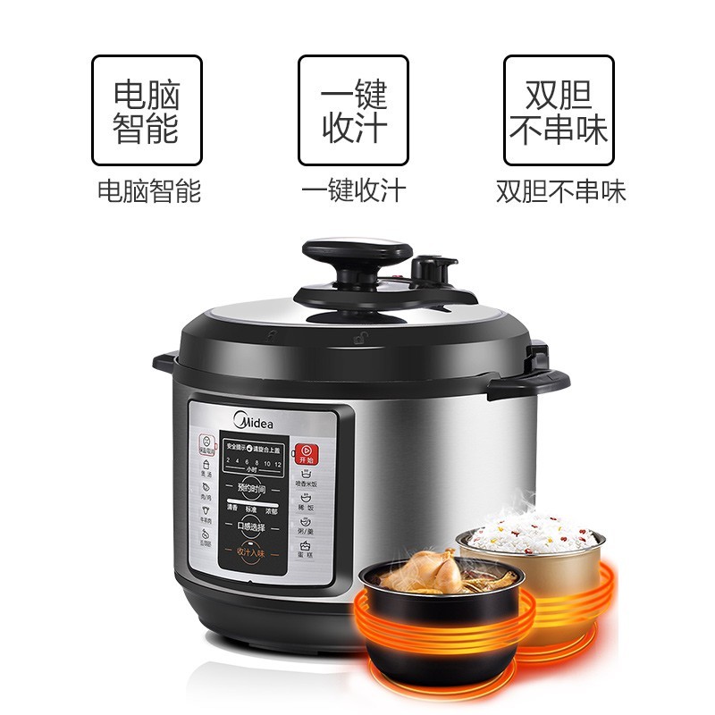 美的电压力锅家用5L升双胆智能高压锅饭煲1正品2特价3-4-6人5026P