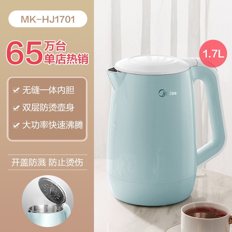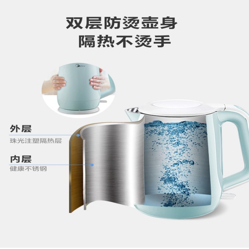 美的烧水壶家用304不锈钢电热水壶小型开水自动断电保温一体茶壶