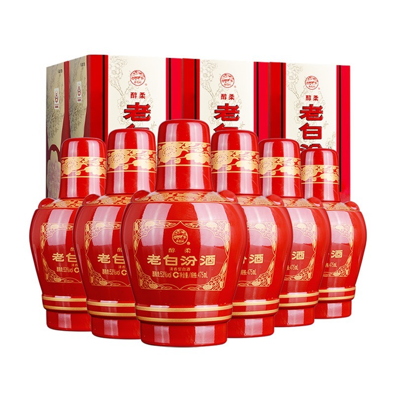 山西汾酒杏花村酒 醇柔老白汾酒53度 475ml*6瓶整箱装 清香型白酒