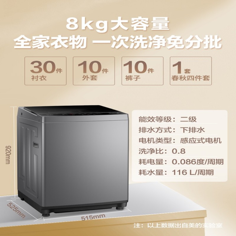 Midea美的MB80V33B8kg公斤全自动洗衣机家用节能静音波轮宿舍