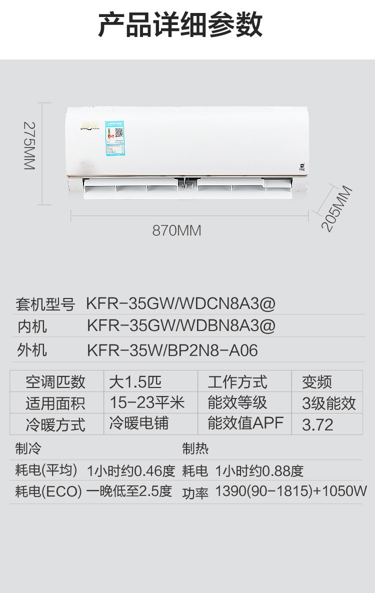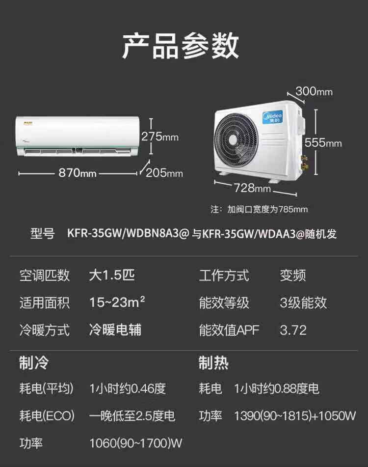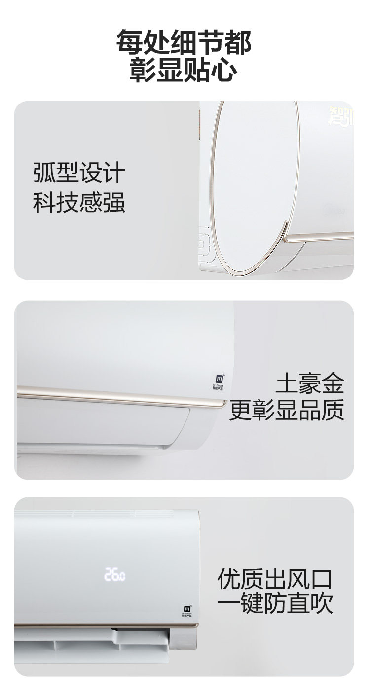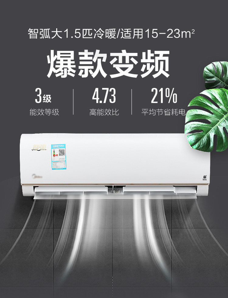 美的一级空调冷静星智弧变频大1P15匹2匹家用智能壁挂机省电节能