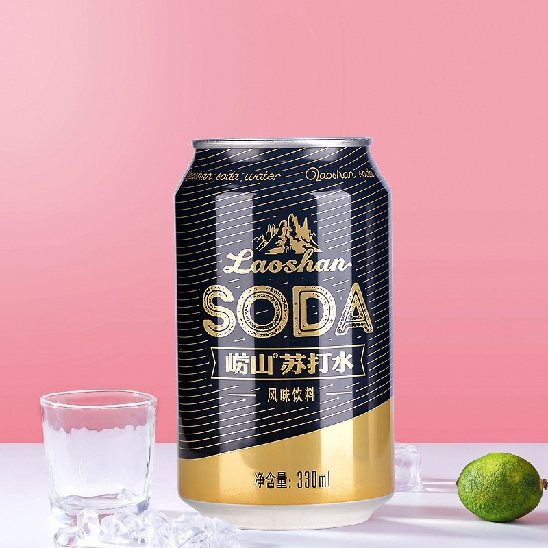 青岛崂山苏打水330ml24罐装整箱易拉罐弱碱性含汽天然瓶无糖包邮