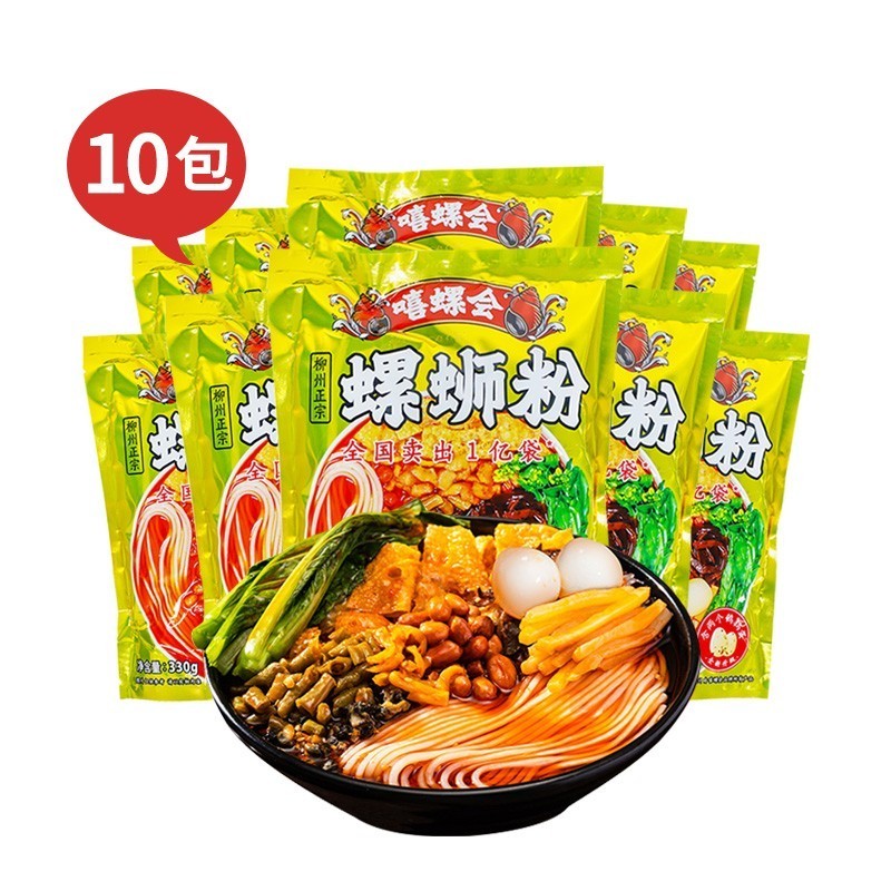 嘻螺会 加鹌鹑蛋款330g*10袋 螺蛳粉 广西柳州特产(煮食)方便面粉米线 速食