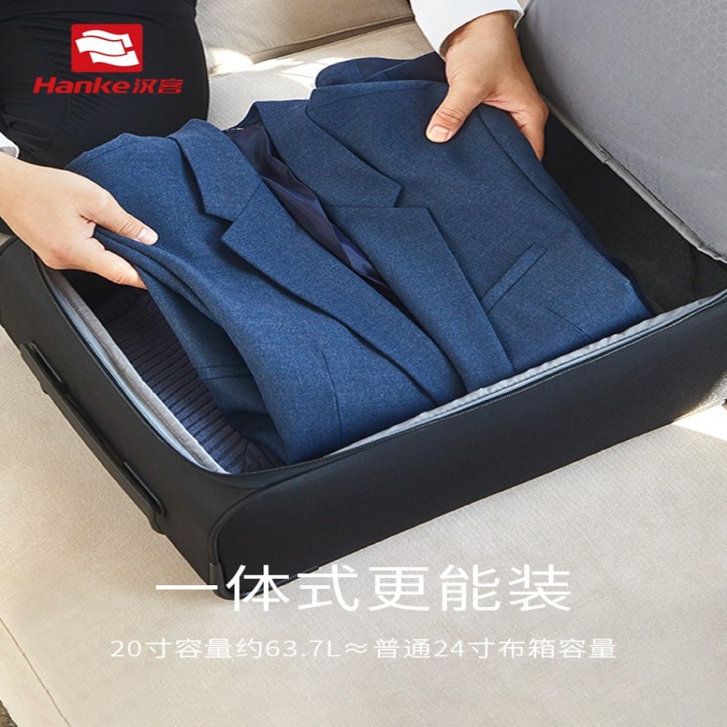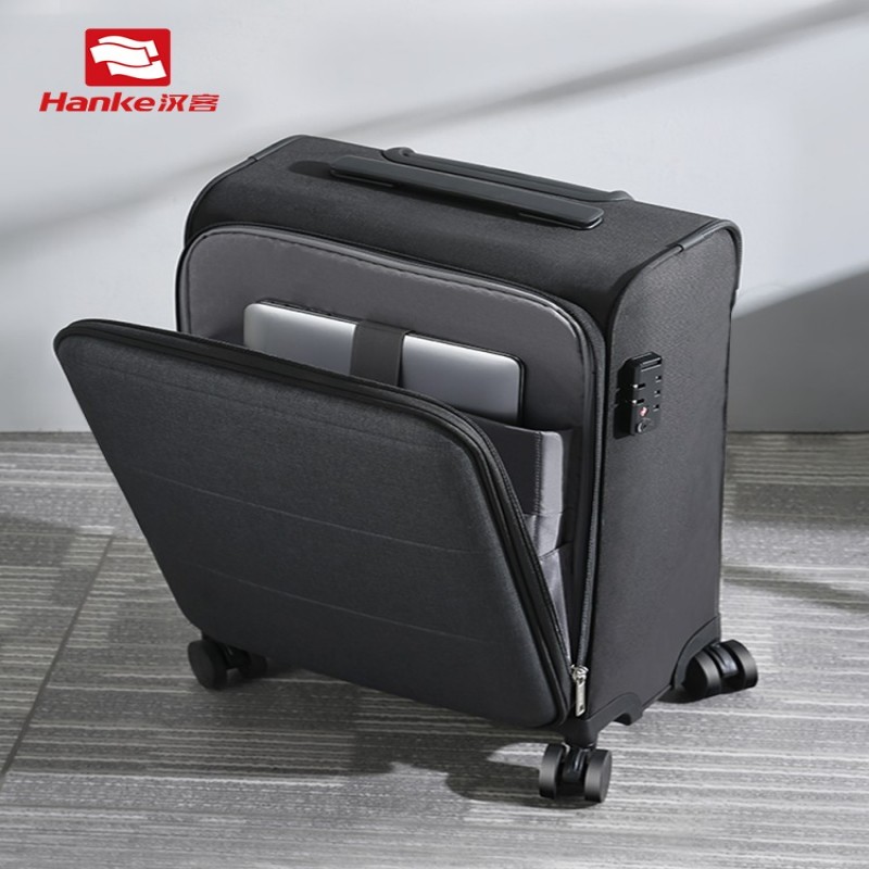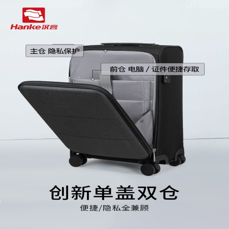 汉客前置侧开口行李箱女牛津布拉杆箱20寸可放电脑商务登机旅行箱