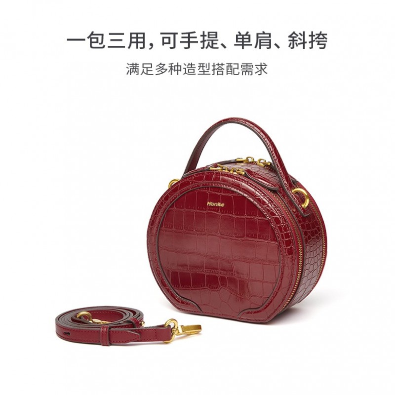 圆形包包女夏真皮小圆包2022新款小众圆饼包红色斜挎包时尚手提包