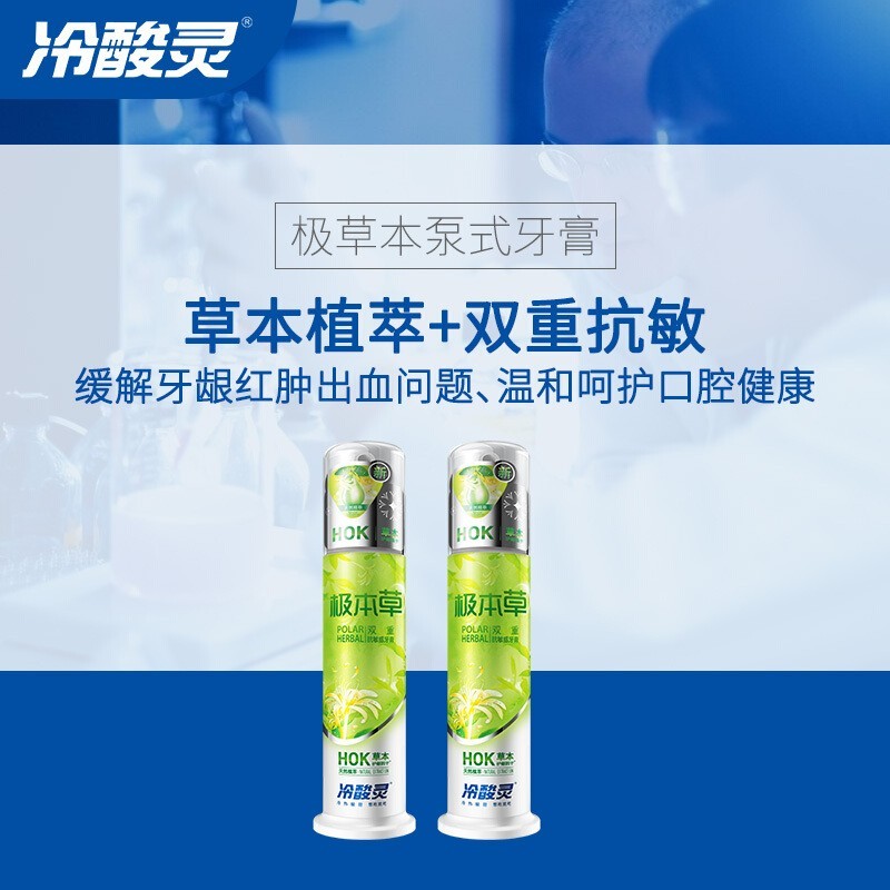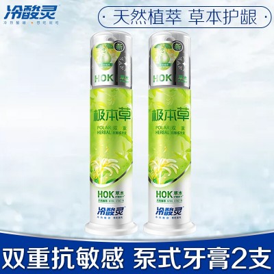冷酸灵牙膏美白专研按压式极地白极本草护龈家庭实惠装