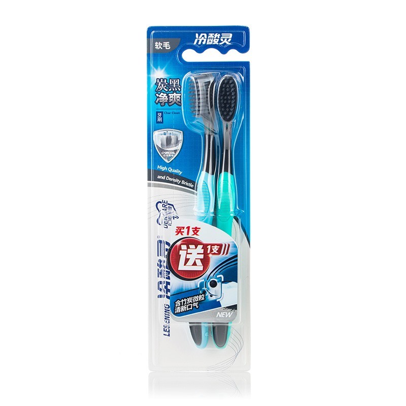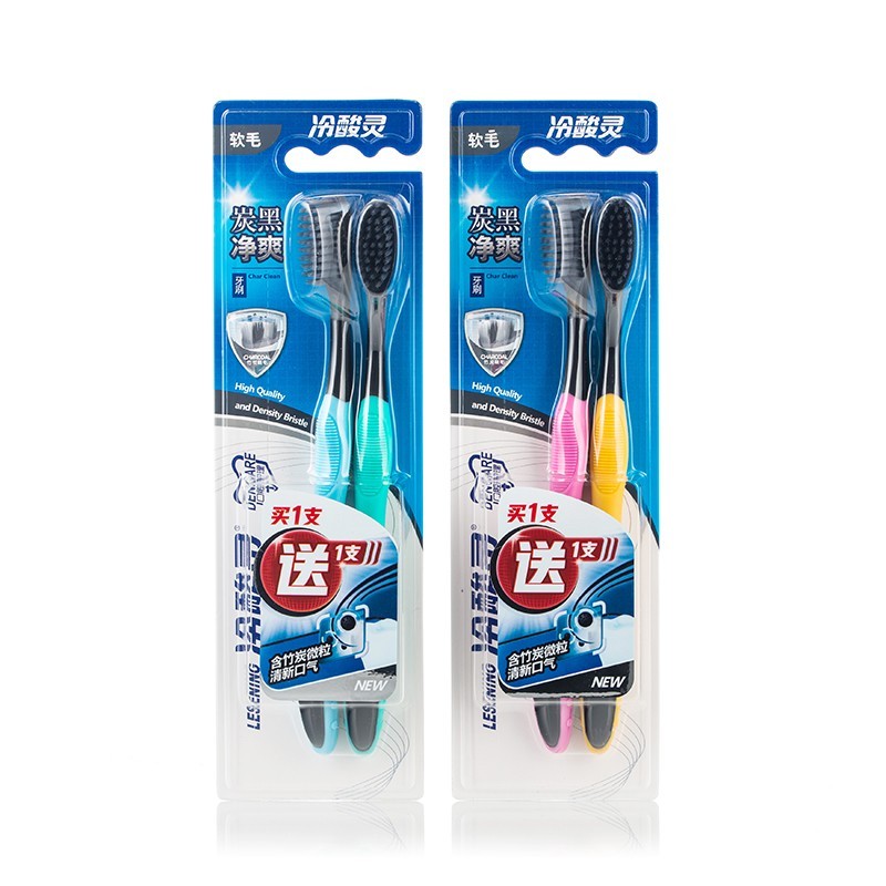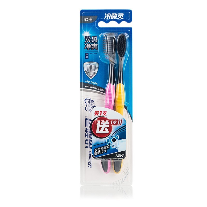 冷酸灵 牙刷 炭黑净爽 软毛 2支*2套(颜色随机)