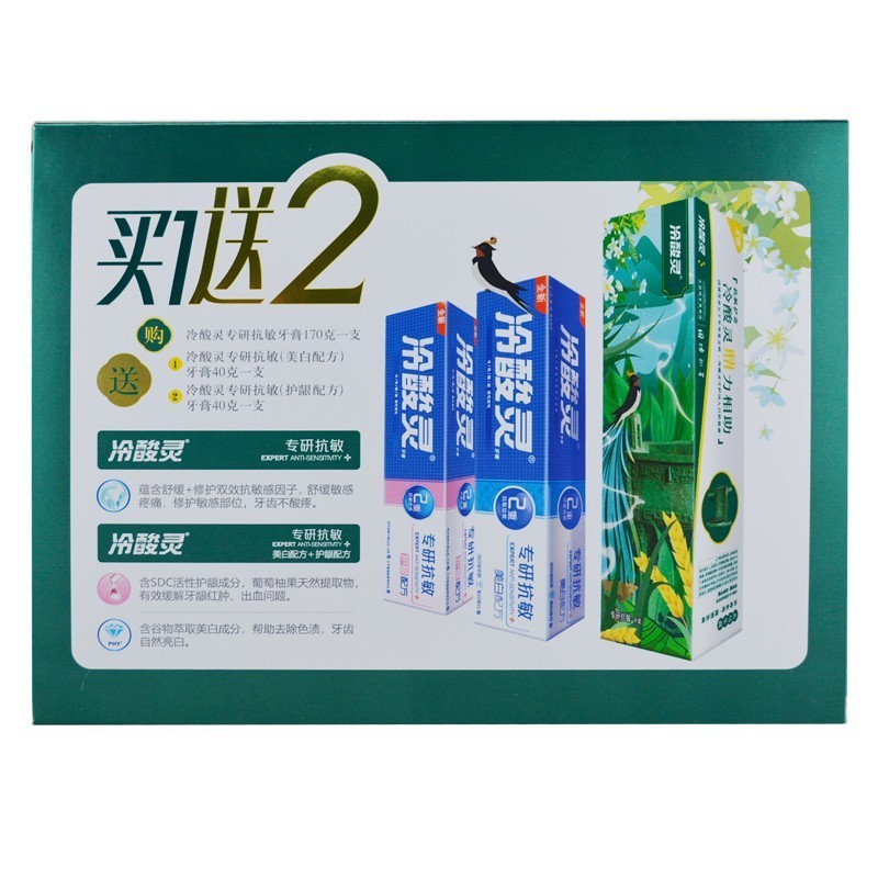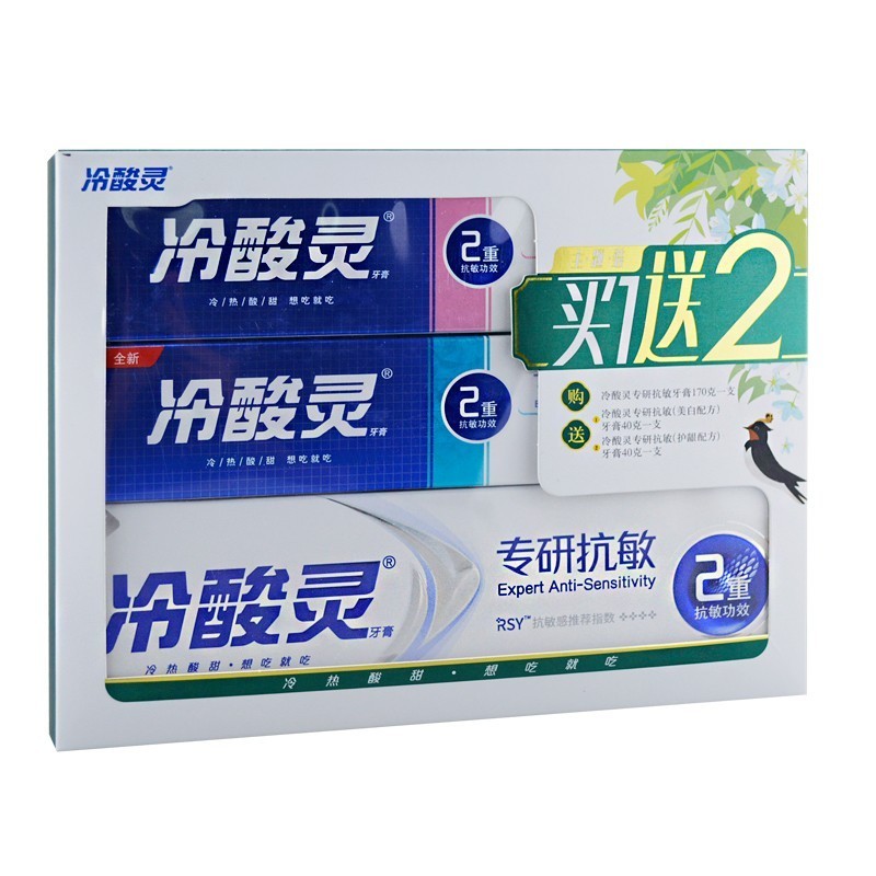 冷酸灵专研抗敏买1送2主题套装 专研抗敏牙膏170g+美白配方40g+护龈配方40g 2951冷酸灵专研抗敏170g+2个40g 1套 ¥32.6 |