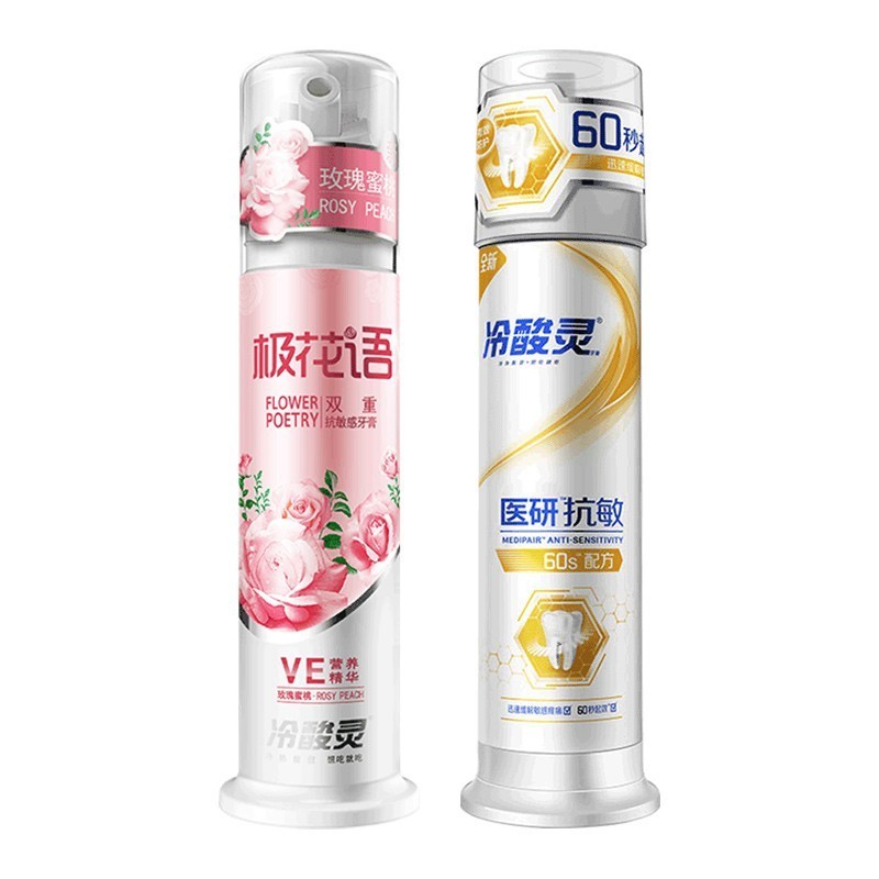 冷酸灵牙膏全新升级泵式清新口气按压式去烟渍牙膏冷热酸甜想吃有吃 多味道多选择组合 极花语+医研