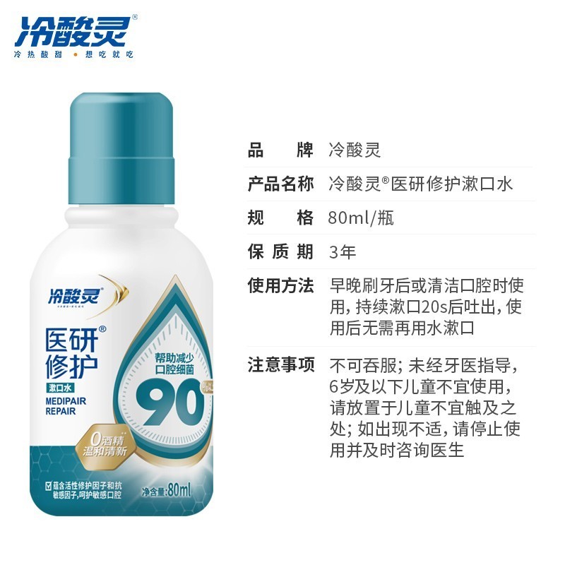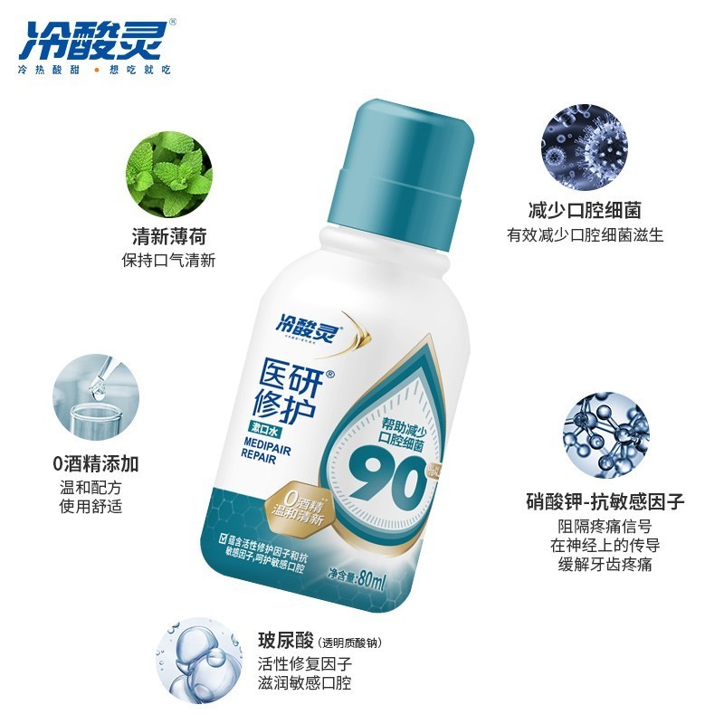 冷酸灵漱口水医研修护清洁口气清除异味共80m