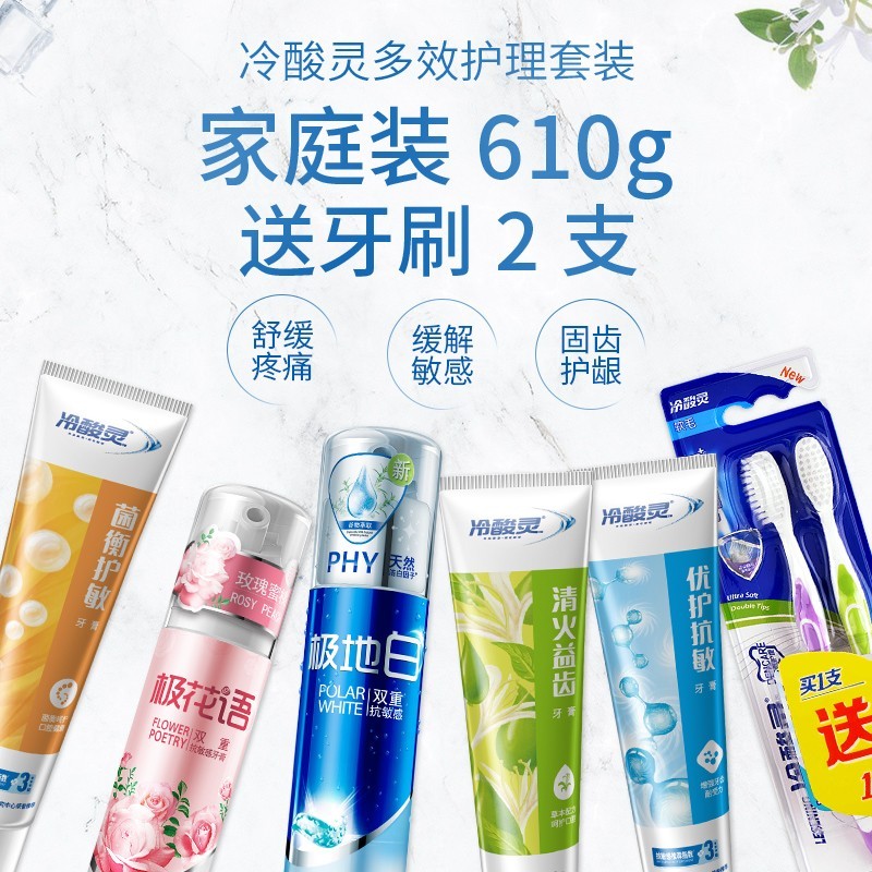 冷酸灵牙膏全效抗敏感套装610g*1 套美白牙齿家庭装清新口气