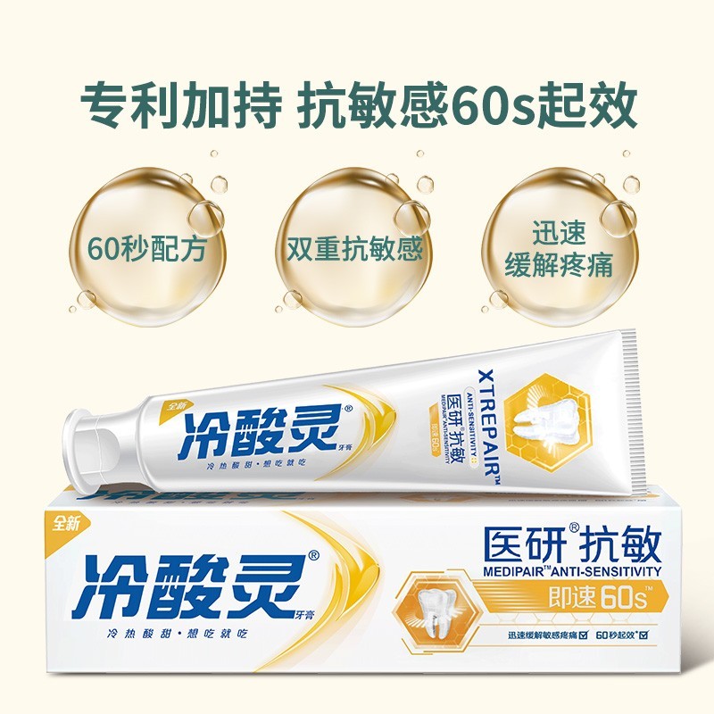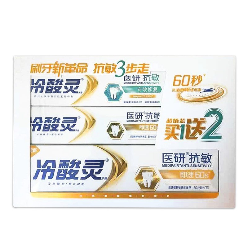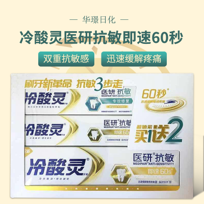 冷酸灵即速医研抗敏牙膏60s配方清新口气去黄牙垢亮白1103030l