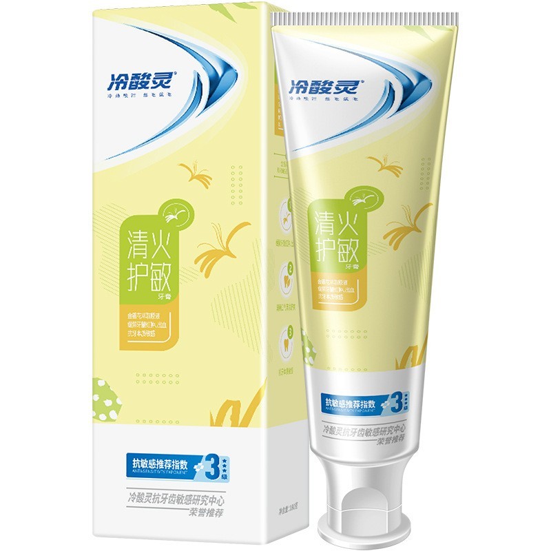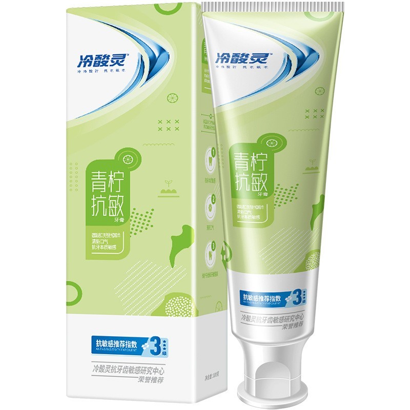 冷酸灵茶醇清新青柠清火盐白抗敏感牙膏净白护龈去渍180g家庭装
