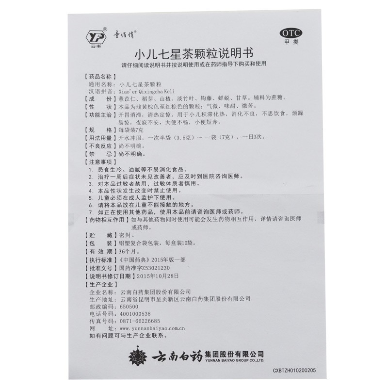 云南白药 云丰 小儿七星茶颗粒 10袋/盒(开胃 清热 消化不良)