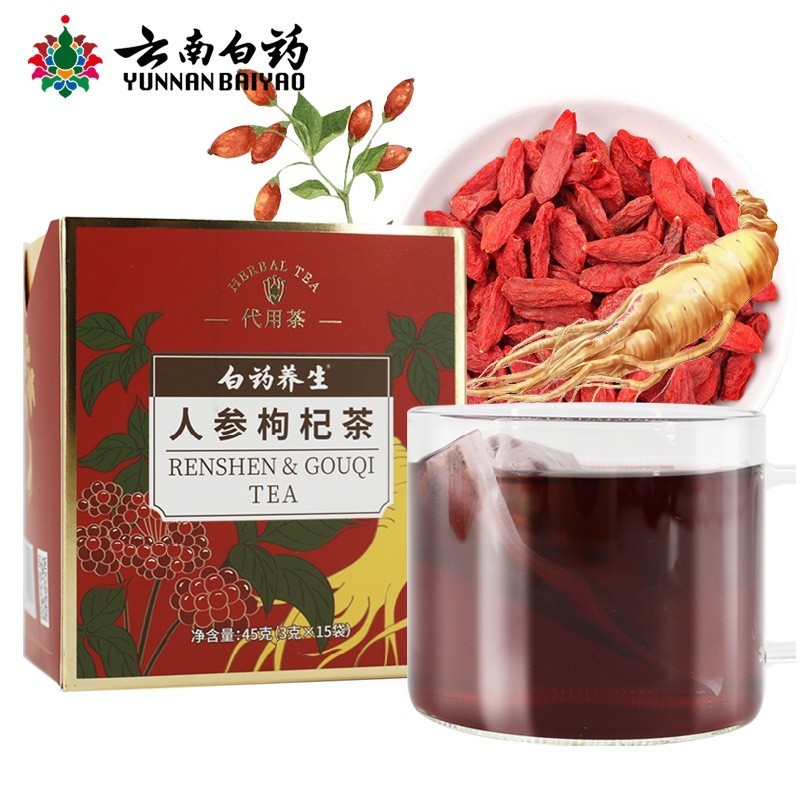 云南白药 白药养生 人参枸杞茶 3g/袋*15袋/盒 桑椹 覆盆子 黄精 人参 枸杞子配方