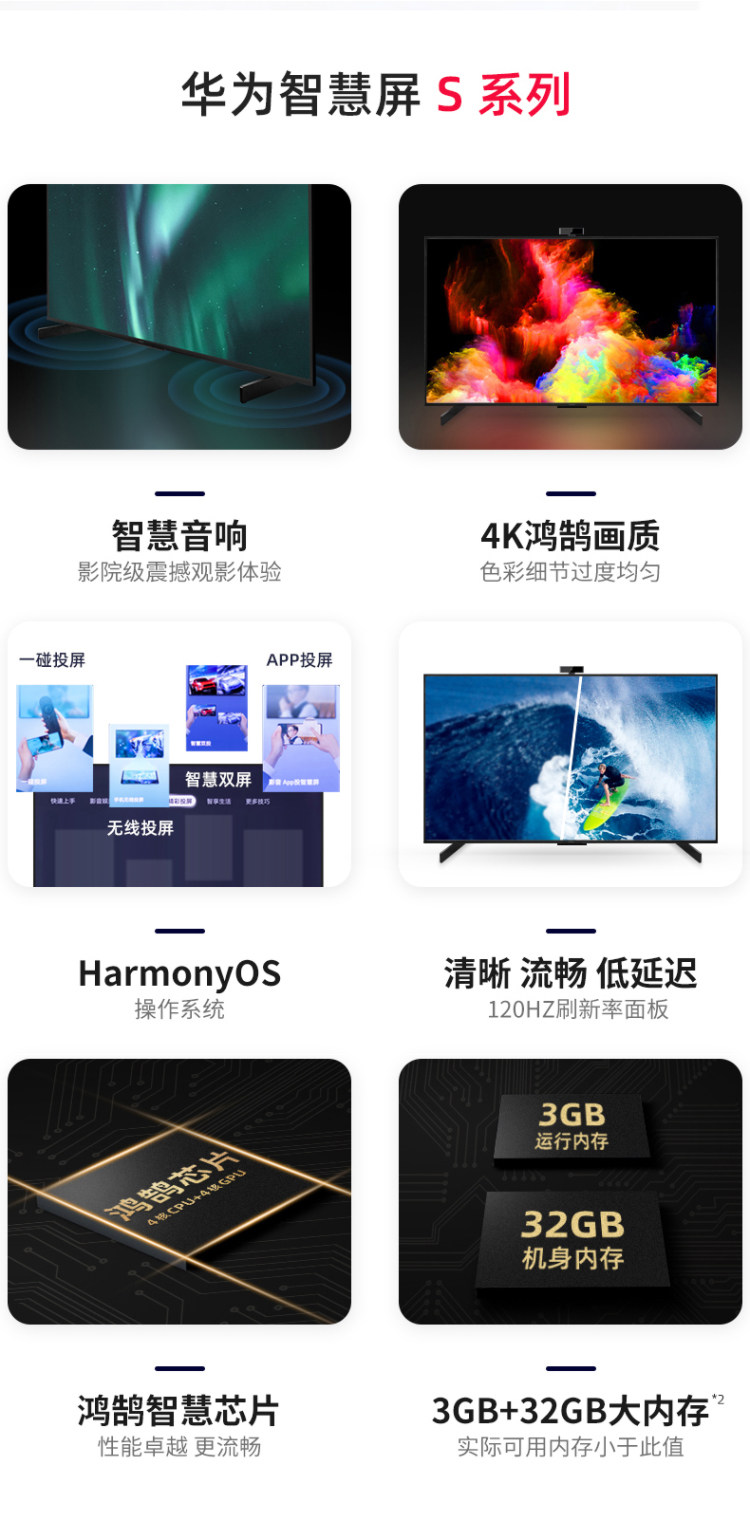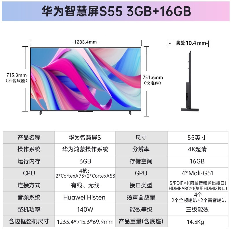 华为智慧屏S55英寸超薄全面屏4K超高清智能语音液晶电视机S65S75